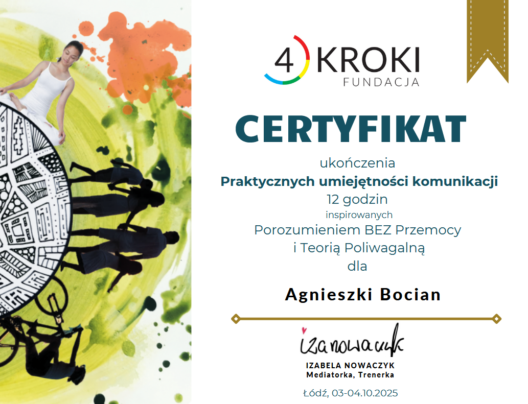 Jestem psychologiem o niezwykłej, interdyscyplinarnej ścieżce zawodowej – od trzech dekad wspieram osoby zmagające się z cukrzycą i trudnościami żywieniowymi jako pielęgniarka diabetologiczna i dietetyk, a od dwóch lat łączę tę wiedzę z profesjonalnym podejściem psychologicznym. Ukończyłam dietetykę o specjalności psychodietetycznej oraz psychologię. Jestem w takcie zdobywania umiejętności jako psychoterapeutka w szkole psychoterapeutycznej VIs Salutis w nurcie integracyjnym. Wierzę, że prawdziwe zdrowie rodzi się w harmonii ciała i umysłu, dlatego oferuję terapię, która obejmuje zarówno emocje, nawyki żywieniowe, jak i holistyczne strategie radzenia sobie z codziennym stresem.