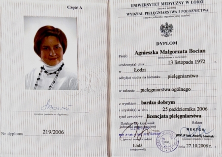 - Pielęgniarstwo, studia licencjackie (Uniwersytet Medyczny w Łodzi)